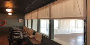 Sunbrella Fabric outdoor shade curtains will keep your customers cool on sunny days. All marine grade hardware and 10 year warranties with over 100 Sunbrella solids and stripe fabrics to coordinate with your restaurants decor.
