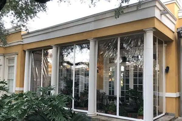 Clear Vinyl Roll up curtains protect your screened porch, gazebo, restaurant outdoor dining area, commercial outdoor areas and anywhere you need drop down curtains for protection from the weather while still maintaining your view. Keep out rain, snow pollen and wind. Our Clear roll up curtains are designed to with-stand wind loads up to 70mph. All are custom made and designed to fit any area using marine grade fabrics, marine clear vinyl and marine hardware.