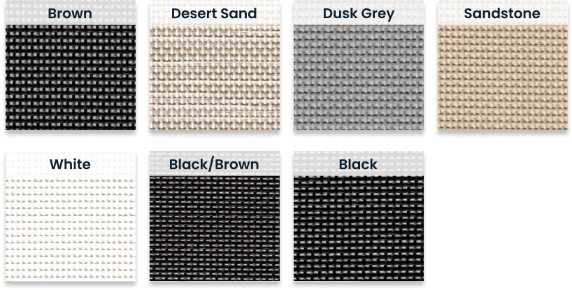 Choose from a wide variety of materials and colors for your shade screens. PYC offers options to best match your home, business, or design idea.