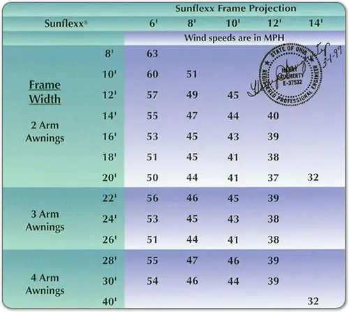 - Only Patio Awning with a Certified Wind Load Chart